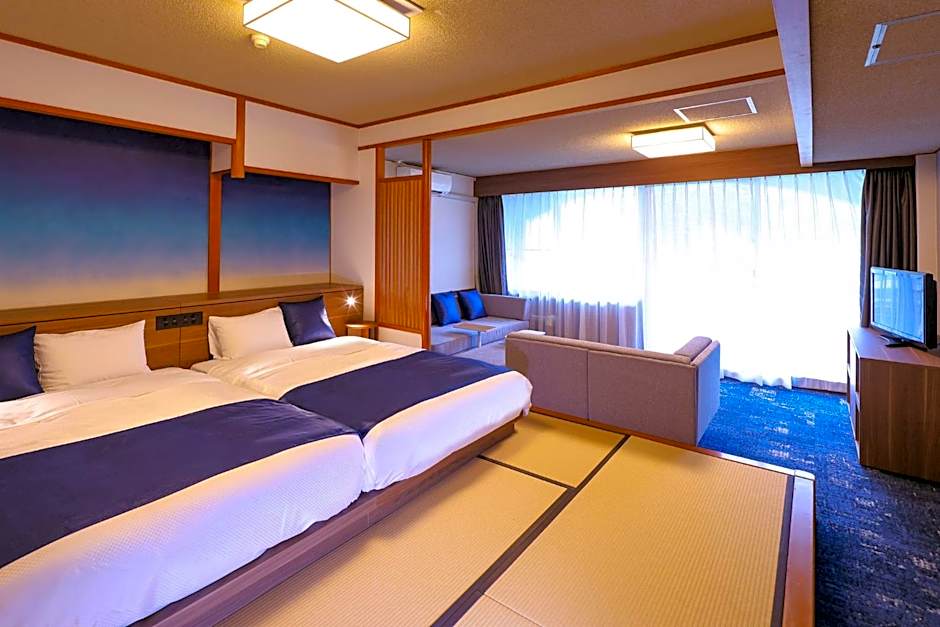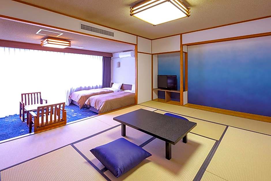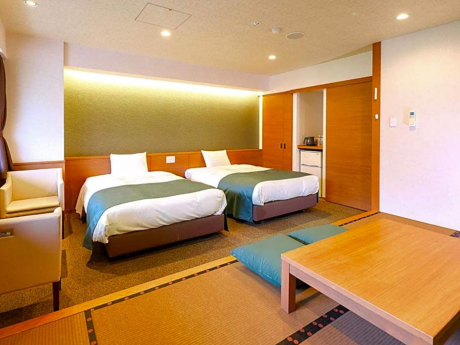 As opções de quarto abrangem uma ampla variedade de layouts Estilo Japonês, Japonês-Ocidental e Suíte, incluindo configurações familiares e econômicas. Por exemplo, "Standard Family, Single Use (474 sqft)" acomoda 6 adultos e 3 crianças com seis futons, e "Japanese Style, Private Bathroom (474 sqft)" pode hospedar 8 adultos e 7 crianças com oito futons. Uma "Suite Japanese Style, Shower Only" oferece uma opção compacta para dois hóspedes, enquanto o "Twin Room, River View" fornece outra variação para viajantes que buscam espaço e vista.